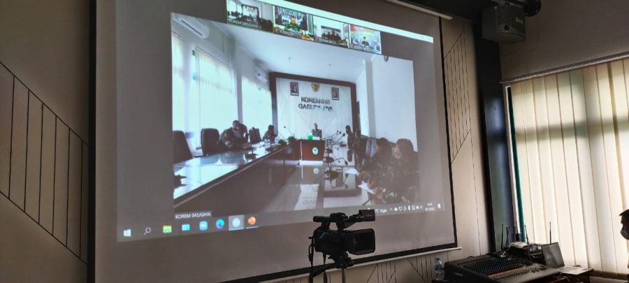 Pangkalpinang – Danrem 045/Gaya Brigjen TNI M. Jangkung Widyanto, S.I.P., M.Tr(Han) pimpin rapat percepatan vaksinasi TNI di wilayah Prov. Kep. Bangka Belitung, melalui Vidio conference dari Makorem komplek pemkap Kel. Air Itam Kec. Bukit Intan Kota Pangkalpinang, Rabu 10/11/2021.