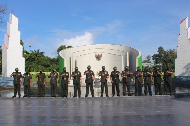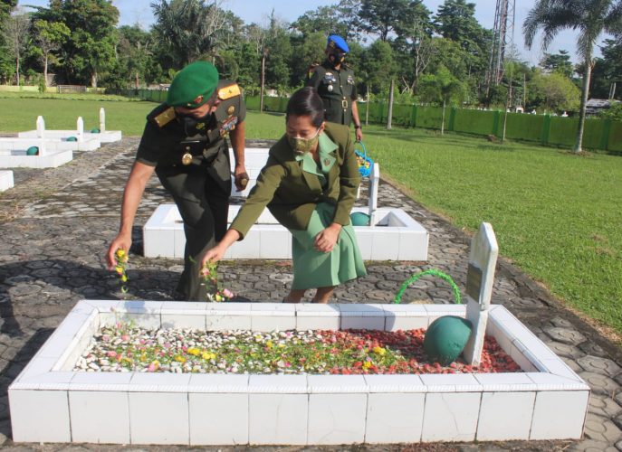 PANGKALPINANG — Ziarah Rombongan dalam rangka HUT ke-11 Korem 045/Gaya. Ziarah ini dilaksanakan di Taman Makam Pahlawan Pawitralaya Jalan Raya Koba Pangkalpinang, Jum’at 11/06/2021 yang dipimpin oleh Danrem 045/Gaya, Brigjen TNI M. Jangkung Widyanto, S.I.P., M.Tr.(Han) dihadiri oleh Para Perwira, Bintara, Tamtama dan Ketua Persit Kartika Chandra Kirana Koorcab Rem 045 PD II/Sriwijaya Ny. Deasy Jangkung Widyanto beserta pengurus. Kegiatan didahului dengan penghormatan kepada Arwah Para Pahlawan dan Mengheningkan Cipta. Selanjutnya peletakkan karangan bunga ditugu Taman Makam Pahlawan Pawitralaya oleh Pimpinan Ziarah rombongan dan diakhiri dengan penghormatan. Kegiatan dilanjutkan dengan tabur bunga didahului oleh Pimpinan Ziarah beserta Ibu ketua pengurus Persit diikuti oleh seluruh peserta Ziarah.