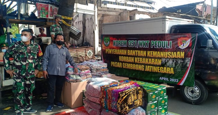 Bantuan yang diberikan berupa alat perlengkapan untuk sholat dan Pakaian layak pakai untuk anak-anak dan dewasa kepada warga yang mengalami musibah kebakaran tersebut merupakan salah satu bentuk perhatian serta kepedulian Korem 051/Wkt dan Kodim 0505/JT kepada warga binaan teritorialnya, dimana pemberian bantuan tersebut langsung di serahkan oleh Dandim 0505/JT yang didampingi Danramil Mayor Czi Jarmadi, Camat Jatinegara, Lurah CBU, ACT dan FKDM.