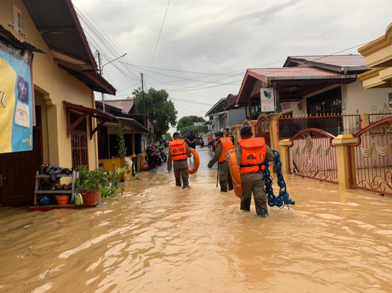 Tim Siaga Bencana juga melaksanakan pengaturan lalu lintas di jalan tersebut yang sempat macet akibat genangan air tinggi.
