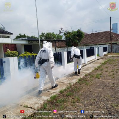 Persindonesia.com Brimob Lampung_Satuan Brimob Polda Lampung kembali terpanggil untuk memberikan yang terbaik untuk masyarakat perumahan Warga Karyawan Bank Mandiri di jln. Gatot Subroto Garuntang, jln. Nusa Indah Pahoman dan Jln. Dr. Susilo Sumur Batu Kota Bandar Lampung untuk mengantisipasi, mencegah dan memberantas Penyebaran DBD (Demam Berdarah Dengue) dengan melakukan Fogging (pengasapan). Kamis (16/05/24)