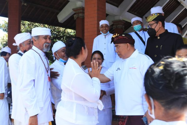 Dalam kesempatan tersebut Bupati Tamba juga menyerahkan punia sebesar lima juta rupiah yang diterima Kelian Pengempon Pura Luhur Dang Kahyangan Rambut Siwi.