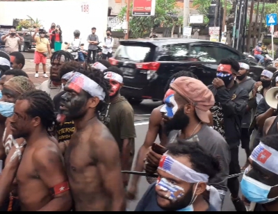 Demi Papua Barat Merdeka, Aliansi Mahasiswa Papua (AMP) dengan memakai pakaian tradisional Papua, mereka turun ke jalan Renon Denpasar, menggaungkan kemerdekaan tanah kelahirannya yang sudah memasuki tahun ke-60.