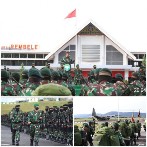 “Pegangan kalian adalah Sapta Marga, Sumpah Prajurit dan 8 Wajib TNI. Kalian harus dekat dengan rakyat di sana, tugas kalian adalah menjaga kedaulatan Bangsa dan Negara Kesatuan Republik Indonesia” ucap jenderal bintang dua ini.