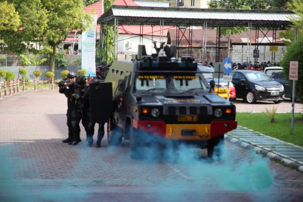 Detasemen Gegana Satuan Brimob Polda Kaltim Gelar Simulasi Anti Teror Dan Penyandraan