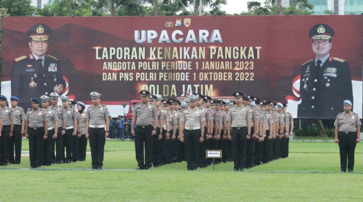 SURABAYA, Persindonesia.com,- Kapolda Jawa Timur Irjen Pol Dr. Toni Harmanto, MH, memimpin langsung upacara kenaikan pangkat anggota Polda Jatim di Lapangan Upacara Mapolda Jatim, kemarin Jumat (30/12/2022).
