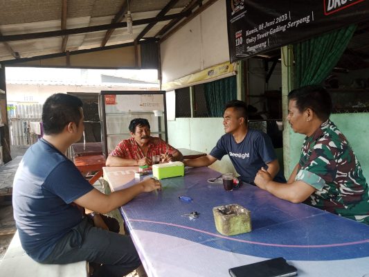 Sertu J Amran Simangunsong hadir melaksanakan serbuan teritorial dengan menjalin komunikasi dengan tokoh masyarakat Karo di salah satu warung kopi di wilayah Pamulang Barat.