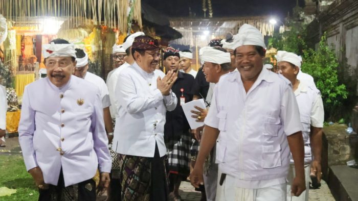 Wagub Cok Ace dalam kesempatan tersebut juga nampak bersama sejumlah penglingsir dan tokoh Puri se-jebag Gianyar, serta panitia karya Pura yang jadi cikal bakal terbentuknya Desa Adat dan Pura Kahyangan Tiga di Bali tersebut.