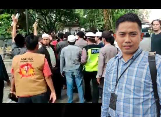 “Saat itu dua jurnalis rekan kita posisinya di bawah tekanan massa ormas suruhan tokoh agama itu, tapi oknum polisi ini diam saja,” ujarnya.