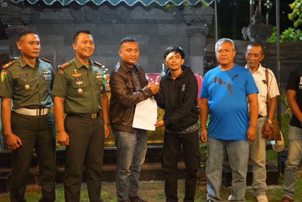 Hal tersebut dengan sigap telah diselesaikan secara kekeluargaan oleh Official dan Aparat Kodim 1617/Jembrana. Kedua belah Pihak telah bersepakat untuk berdamai secara kekeluargaan dan tidak akan ada permasalahan kembali, hal ini ditandai dengan adanya penandatanganan pernyataan bahwa tidak ada permasalahan lebih lanjut,” imbuhnya