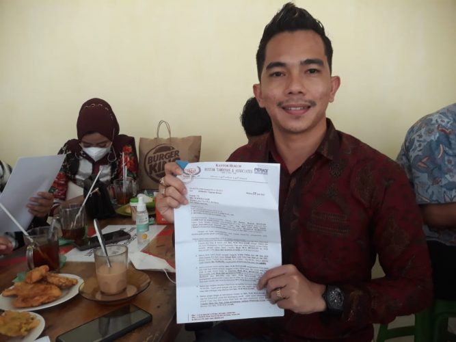 Persindonesia.com Medan – RHT, oknum pengacara yang berdomisili di Medan dijadwalkan akan diperiksa penyidik Polrestabes Medan karena diduga mencemarkan nama baik Nur Malasari. “Oknum RHT sebagai terlapor akan diperiksa Rabu (17/11) setelah panggilan pertama 9 November 2021 lalu, diabaikan RHT dengan alasan ada kesibukan pekerjaan,” ujar Yusuf Pasaribu selaku Kuasa Hukum saksi korban Nur Malasari. Selasa (16/11/21)