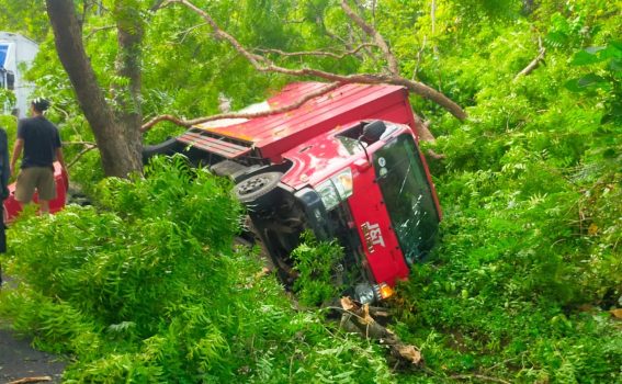 Persindonesia.com Jembrana – Diduga mengantuk, sebuah truk box Nopol L 8387 CR yang dikendarai Abdul Rofik 45 tahun asal Desa Pabean, Kecamatan Sedati, Sidoarjo menabrak pohon perindang dan kendaraan terbalik. Sementara pohon yang ditabrak tumbang menimpa pejalan kaki.