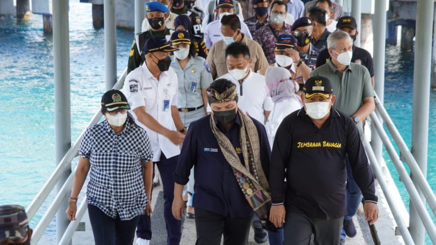 Persindonesia.com Jembrana – Bupati Jembrana I Nengah Tamba menyambut kedatangan Menteri BUMN (Badan Usaha Milik Negara) RI , Erick Thohir di Pelabuhan Penyebarangan Gilimanuk, Minggu (19/9).