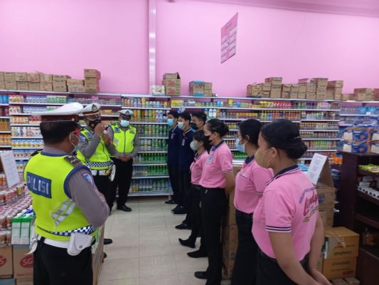 Klungkung (persindonesia.com) – Polres Klungkung, Satlantas Polres Klungkung melalui Unit Dikmas Lantas melaksanakan sosialisasi untuk mematuhi protokol kesehatan di pasar Galiran dan swalayan Clandys, Rabu (12/1/2022). Hal ini dilakukan untuk memutus mata rantai penyebaran Covid-19 di pusat keramaian termasuk di pasar tradisional tersebut.