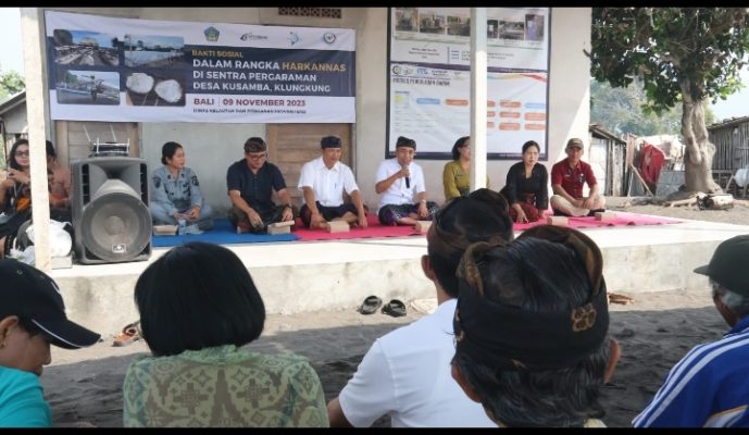 KLUNGKUNG – Kepala Dinas Kelautan dan Perikanan Provinsi Bali beserta jajarannya melaksanakan aksi sosial serangkaian peringatan Hari Ikan Nasional (Harkannas) tahun 2023 di Pantai Kusamba, Kamis (09/11).