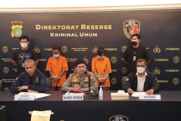 Kabid Humas Polda Metro Jaya Kombes Pol. Endra Zulpan, S.I.K., M.Si. didampingi Kasubdit Jatanras Ditreskrimum Polda Metro Jaya AKBP Indra Wienny Panjiyoga, S