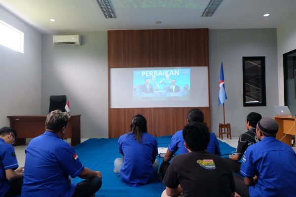 Persindonesia Jember – DPC Partai Demokrat Kabupaten Jember menggelar nonton bareng melalui live streaming bersama jajaran pengurus Partai Demokrat Jember pada Kamis 2/3/2023, di Sekretariat DPC Partai Demokrat Jember.