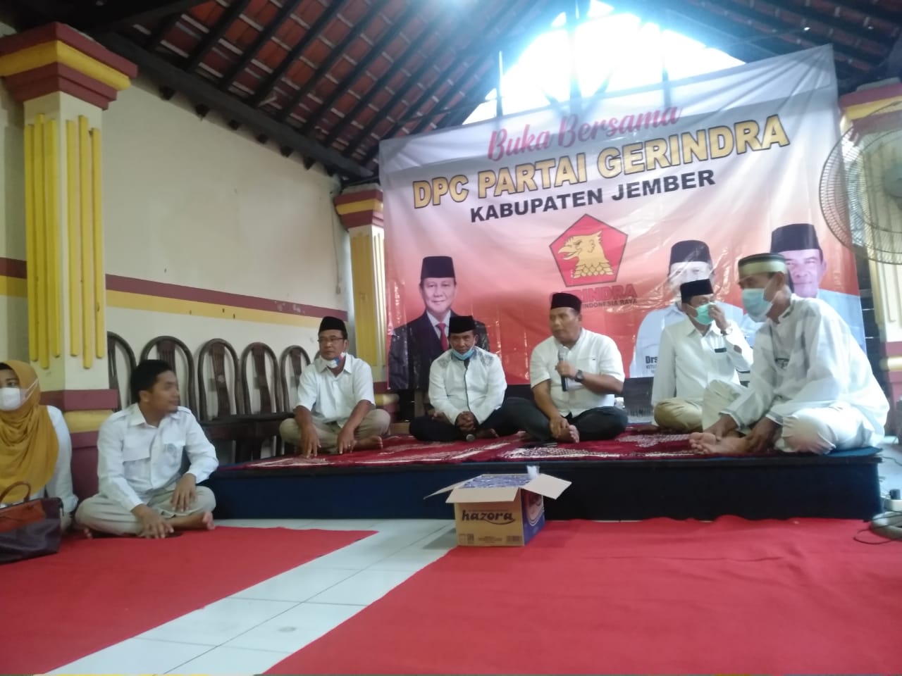 Jember, Persindonesia – Dalam rangka bulan suci Ramadhan 1442 H/2021 M, DPC Partai Gerakan Indonesia Raya (Gerindra) Kabupaten Jember menggelar silaturahmi dan buka puasa bersama seluruh kader DPC, PAC serta Sayap Partai Gerindra se Kabupaten Jember, pada Jum’at (07/05/2021) di Sekretariat DPC Gerindra Jalan Nusantara V / C7 Perum Kaliwates Regency.