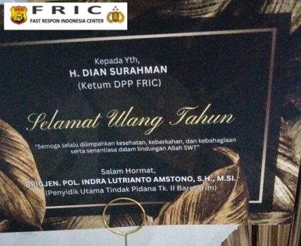 Dewan Pimpinan Pusat Fast Respon Indonesia Center (FRIC) dengan penuh rasa syukur, penghormatan, dan ketulusan hati menyampaikan apresiasi yang begitu mendalam kepada seluruh jajaran Kabareskrim Polri atas perhatian dan penghargaan yang diberikan kepada Ketua Umum DPP FRIC, H. Dian Surahman, pada momentum ulang tahun beliau yang ke-44.