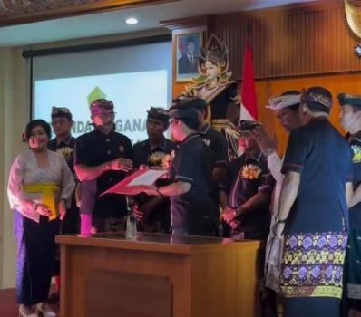 Acara pengukuhan berlangsung khidmat dengan dihadiri oleh tokoh masyarakat, perwakilan pemerintah daerah, serta unsur Majelis Desa Adat (MDA) Kabupaten Badung.