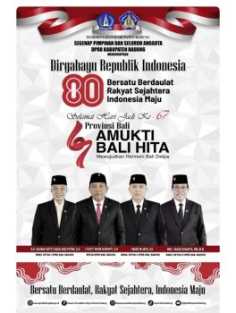BADUNG.Media Pers Indonesia – Dewan Perwakilan Rakyat Daerah (DPRD) Kabupaten Badung mengucapkan Selamat Hari Ulang Tahun ke-80 Republik Indonesia.