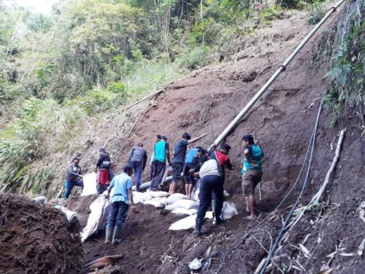 ”Posisi pipa kita berada di bantaran sungai Melangit, ketika turun hujan lebat rawan tertimbun longsor atau disapu air sungai yang meluap. Mengatasi persoalan yang kerap terjadi maka salah satu alternatif  yakni  membangun sumur bor, Untuk perencanaannya sedang digodok, jika pembanguan sumur bor terealisasi maka pemanfaatnnya hanya di saat kondisi darurat, untuk sehari-hari tetap memanfaatkan sumber mata air yang ada,” kata Dewa Ratno Supaso Mesi.