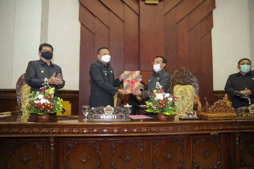 Usai Anom Masta membacakan rekomendasi DPRD, Ketua DPRD Wayan Tagel Winarta langsung menyerahkan rekomendasi DPRD kepada Bupati Made Mahayastra untuk selanjutnya rekomendasi yang telah dirumuskan  agar diperhatikan untuk penyempurnaan penyelenggaraan pemerintahan di masa datang.