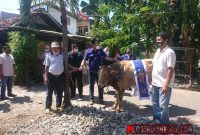 Ipong Muchlissoni Wakil ketua DPW NasDem Jatim Bidang Organisasi Keanggotaan Kaderisasi, menyerahkan se ekor Sapi di RW 3 Kelurahan Sawahan, Kecamatan Sawahan, Surabaya.