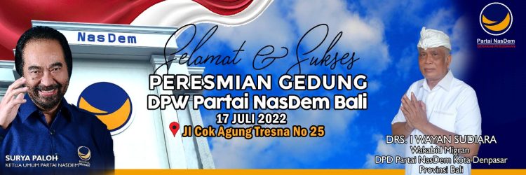 Drs.I Wayan Sudiara, Wakabid Migran DPD Partai Nasdem Kota Denpasar, mengucapkan “Selamat dan Sukses atas Peresmian Gedung DPW NasDem Bali.