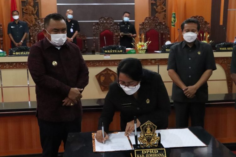 Dalam rapat paripurna tersebut, dua ranperda tentang Anggaran Pendapatan Dan Belanja Daerah Kabupaten Jembrana Tahun Anggaran 2022 Dan Ranperda tentang Retribusi Persetujuan Bangunan Gedung akhirnya ditetapkan menjadi Peraturan Daerah (Perda). Penetapan Perda tersebut ditandai dengan penandatanganan Berita Acara persetujuan antara Bupati Jembrana I Nengah Tamba dan dan Ketua DPRD Ni Made Sri Sutharmi.