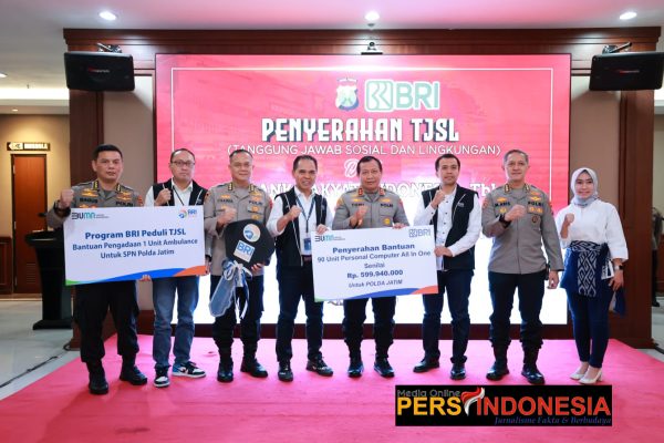 SURABAYA, Persindonesia.com – Kapolda Jawa Timur Irjen Pol Dr Toni Harmanto, M.H didampingi pejabat utama (PJU) Polda Jatim, menerima CSR (Corporate Social Responsibility) dari Bank BRI, pada Jumat (1/9)2023)