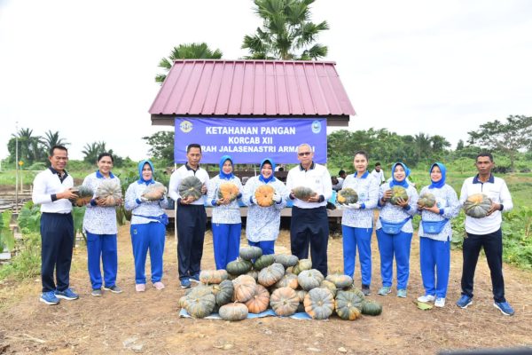 Dalam kesempatan ini, Ketua Korcab XII DJA I didampingi Danlantamal XII secara simbolis memotong buah labu yang sudah ditanam sebelumnya, kemudian labu-labu tersebut akan diberikan kepada personel Lantamal XII dan didistribusikan kepada masyarakat lingkungan sekitar.
