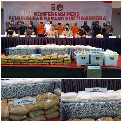 Barang bukti tersebut berupa, Sabu sabu 29,6 kilogram, ganja 63,3 kilogram, dan puluhan botol obat obatan berbagai merk.