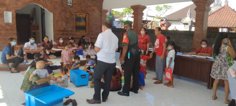 Persindonesia.com Jembrana – Babinsa Desa Batuagung Koramil 1617-01/Negara Pelda I Nyoman Suarken memberikan pendampingan pelayanan Posyandu bagi Balita yang diselenggarakan oleh Bidan Desa Batuagung bekerja sama dengan Koordinator KB Kecamatan Jembrana. Kegiatan Posyandu berupa penimbangan dan imunisasi Balita berlangsung di Balai Banjar Taman, Desa Batuagung, Kecamatan Jembrana, Rabu (22/06/2022)