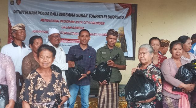 PersIndonesia.Com,Klungkung- Dalam rangka mendukung program Asta Cita Presiden untuk memperkokoh sistem ketahanan pangan Nasional, Kepolisian Daerah (Polda) Bali melalui Direktorat Intelkam tatap muka sekaligus memberikan Bantuan Sosial (Bansos) kepada Krama Subak Desa Tohpati, Kecamatan Banjarangkan, Kabupaten Klungkung, Selasa 19 Agustus 2025.