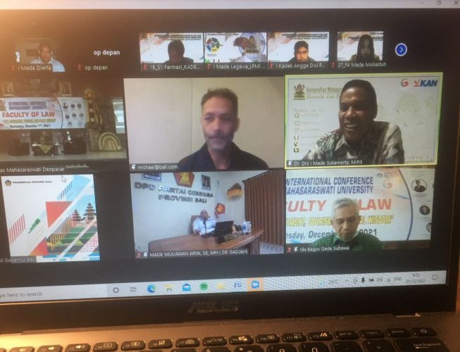 Situasi dan kondisi yang memprihatinkan inilah, Fakultas Hukum Universitas Mahasaraswati Denpasar menggelar webinar International Confrence dengan tema “Law, Investment, Tourism & Local Wisdom“, Rabu (1/12/2021).