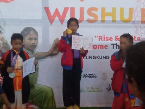 Klungkung,PersIndonesia.Com- Srikandi cilik Kodim 1610/Klungkung bernama Ni Kadek Martha Lisa Wardana yang merupakan salah satu atlet Wushu Kabupaten Klungkung berhasil menorehkan prestasi fantastis pada event Kejuaraan Provinsi (Kejurprov) Wushu Bali yang digelar di Gor Swecapura Klungkung.