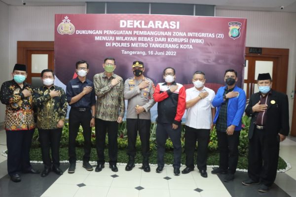 Tangerang,Persindonesia.com – Kapolres Metro Tangerang Kota Kombes Pol Zain Dwi Nugroho melaksanakan deklarasi penguatan pembangunan Zona Integritas (ZI) Menuju Wilayah Bebas dari Korupsi (WBK) di Wilayah hukum Polres Metro Tangerang Kota. Kamis, (16/6/2022).