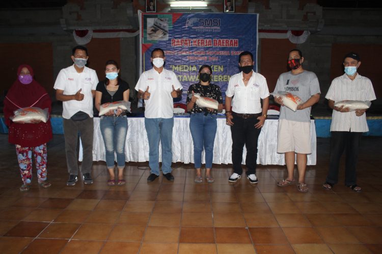 DENPASAR – Rapat Kerja Daerah (Rakerda) Serikat Media Siber Indonesia (SMSI) Bali tahun 2021, yang berlangsung di Gedung PWI Bali, Senin 26 Juli 2021, juga dimanfaatkan oleh Pengurus SMSI Bali untuk menyalurkan bantuan sembako kepada media-media online anggota SMSI Bali dan para pedagang yang berjualan di seputaran Sekretariat SMSI Bali yakni di Gedung PWI Bali.