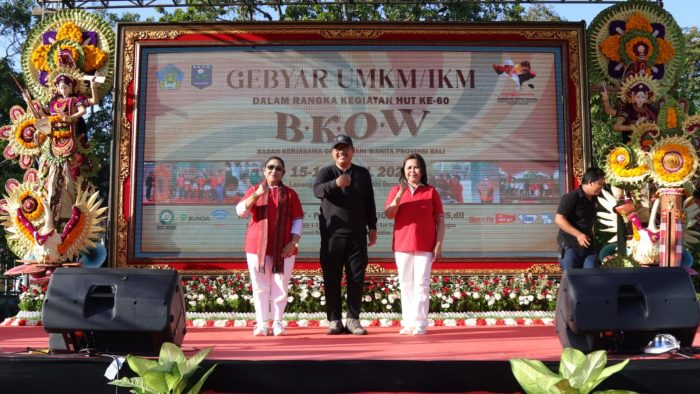 Denpasar – Wakil Gubernur Bali Tjokorda Oka Artha Ardhana Sukawati yang juga sebagai Pembina Badan Kerjasama Organisasi Wanita (BKOW), secara resmi membuka Gebyar UMKM IKM Dalam Rangka HUT Ke-60 BKOW di Lapangan Timur Bajra Sandhi-Denpasar, pada Sabtu (15/4).