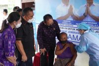 Pelaksanaan gebyar vaksinasi pada hari pertama, Selasa (06/04) dipantau langsung Wakil Gubernur Bali Tjokorda Oka Artha Ardana Sukawati bersama Bupati Jembrana I Nengah Tamba, Wabup I Gede Ngurah Patriana Krisna serta jajaran Forkopimda lainnya.