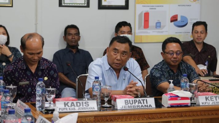 Persindonesia.com Jembrana – Sebagai wujud dukungan terhadap Komisi Pemilihan Umum (KPU) Kabupaten Jembrana, Pemkab Jembrana akan membangun Gedung KPU Jembrana baru yang lebih representatif. Hal tersebut diungkapkan Bupati Jembrana I Nengah Tamba saat sosialisasi pembangunan Gedung KPU baru, bertempat Ruang Rapat KPU Jembrana. Selasa (19/7/2022)