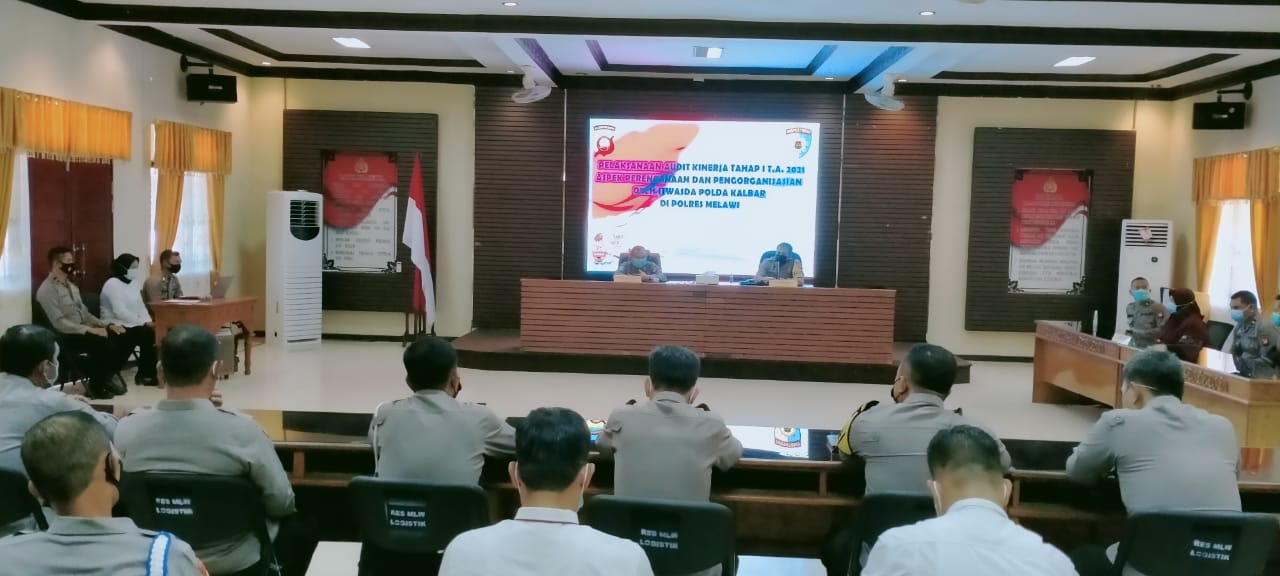 Satker Polres Melawi menerima kunjungan dari Tim Itwasda Polda Kalbar dalam rangka audit kinerja tahap 1 tahun anggaran 2021, Aspek perencanaan dan pengorganisasian.
