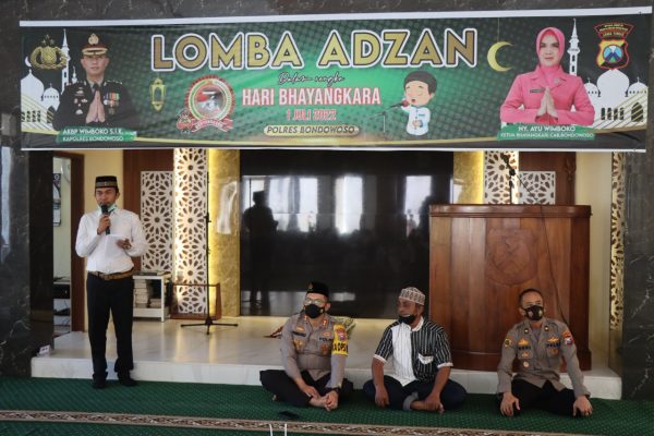BONDOWOSO, Persindonesia – Peringatan HUT Bayangkara Ke-76, Kali ini di buat berbeda, Pasalnya Polres Bondowoso selain menggelar berbagai kegiatan termasuk yang sifatnya sosial. Kali ini juga menggelar lomba adzan dan da’i cilik untuk anak-anak usia dini (7-14 Tahun), hal ini guna membetuk akhlak yang baik atau budi pekerti yang baik pula.