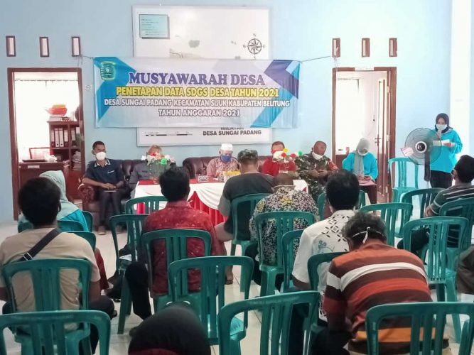 TANJUNGPANDAN — Gelar Penetapan Data SDGS Desa Tahun 2021,Rabu 02/06/2021 oleh Pemdes Sungai Padang dihadiri personil Koramil 414-01/Tanjungpandan Sertu Ahmad Adi bertempat di Aula Kantor Desa Sungai Padang.