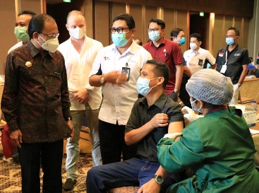 Persindonesia.com – Gubernur Bali Wayan Koster disertai Sekretaris Daerah (Sekda) Provinsi Bali Dewa Made Indra, mendampingi Menteri Pariwisata dan Ekonomi Kreatif (Menparekraf) Sandiaga Uno meninjau pelaksanaan vaksinasi Covid-19 di Bandara Internasional I Gusti Ngurah Rai, Tuban, Badung yang dipusatkan di area terminal keberangkatan internasional pada Senin (22/3) .