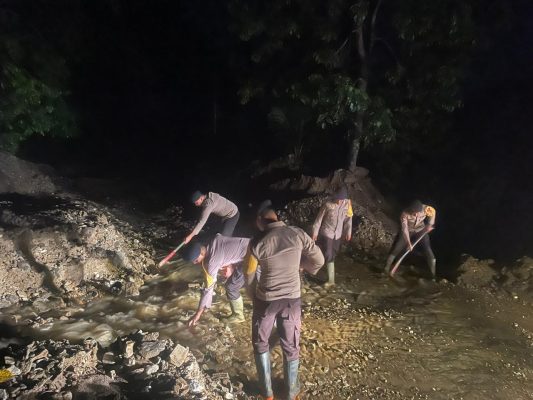 Gerak Cepat Brimob Evakuasi Material Longsor di Gayo Lues