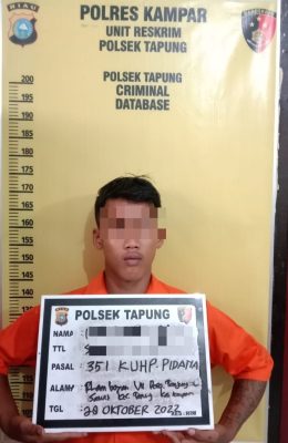 TAPUNG, – Tidak membutuhkan waktu lama, Unit Reskrim Polsek Tapung berhasil menangkap IS alias P (20) pelaku tindak pidana penganiayaan terhadap korban bernama Wiskarniani yang terjadi pada hari Kamis (27/10/2022) pukul 23.30 wib di Simpang Robet Desa Tanjung Sawit Kec. Tapung Kab. Kampar, Jum’at (28/10/2022) pukul 15.00 wib.