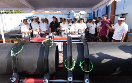 Sementara itu, Direktur Utama Perumda Air Minum Tirta Mangutama, I Wayan Suyasa, menyampaikan bahwa pembangunan pipa bawah laut ini merupakan hasil kerja sama skema business to business antara Tirta Mangutama dengan PT Tiara Cipta Nirwana, dan badan usaha pelaksana PT Pipa Ticini. “Panjang pipa mencapai 7.700 meter dengan diameter HDPE 800 mm dan mampu mengalirkan air sebesar 350 hingga 600 liter per detik. Ini akan memperkuat distribusi air, terutama ke wilayah timur seperti Nusa Dua,” jelasnya.