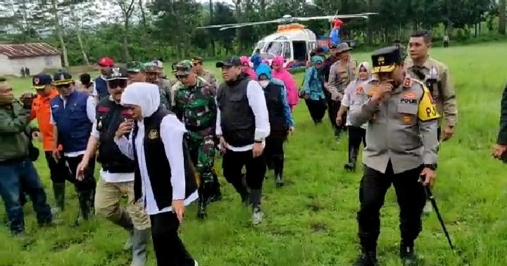 Gubernur Jawa Timur, Khofifah Indar Parawansa yang hadir langsung di lokasi menyampaikan tentang tanggap darurat.